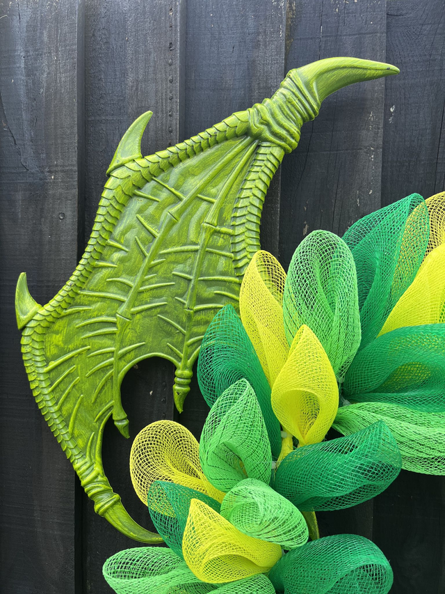 Hand made each dragon scale using mesh Two colour greens and yellow